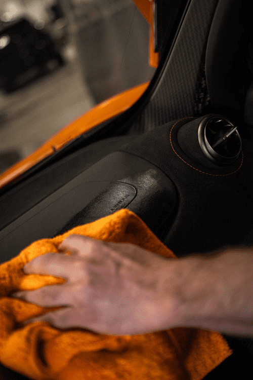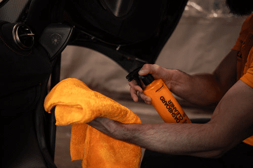 3. Once the surface is cleaned, flip over the microfiber towel to its clean and dry side and buff off any excess product.