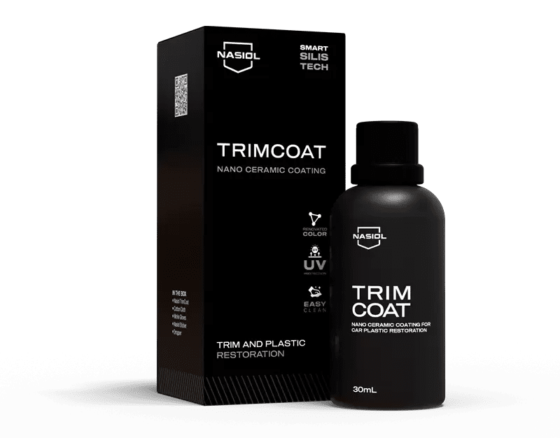 Nasiol TrimCoat car plastic protection keeps trim and plastics color-saturated with its high scratch resistance and ultra water-repellency features. It prevents color fading caused by UV radiation, strong chemicals, and road grime. Besides, it permanently restores dull and discolored parts to their original satin look. Nasiol TrimCoat is applicable to exterior/interior plastic, vinyl, and rubber trim such as bumpers, lights, moldings, door handles, grilles, fenders, side-view mirror housings, and windshield cowlings.